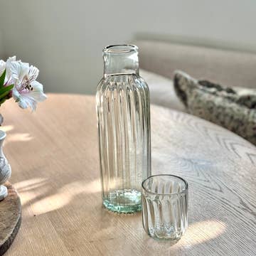 Handmade White Ceramic Carafe with Green Stripes – Moroccan Zagora Model | Elegant Water & Juice Pitcher Bring Moroccan elegance to your table with this Handmade White Ceramic Carafe with Green Stripes, part of the exquisite Zagora collection. Crafted by skilled Moroccan artisans, each carafe is shaped, painted, and glazed by hand, blending timeless craftsmanship with modern style. Material: Glazed ceramic Color: White base with green hand-painted stripes Model: Zagora Origin: Handmade in Morocco Use: Ideal for serving water, juice, or other beverages This artisanal ceramic carafe adds sophistication to any dining table or kitchen. Its clean white finish and soft green detailing make it a versatile and elegant choice for both everyday use and special occasions. Each piece is entirely handmade, resulting in slight variations in shape, tone, and pattern that make every carafe truly unique — a genuine mark of authentic Moroccan craftsmanship. Perfect for: 🥂 Serving water, juice, or wine | 🍽️ Table décor | 🎁 Handmade artisan gift Add charm and refinement to your table with this Moroccan Zagora Ceramic Carafe, where traditional artistry meets modern elegance.