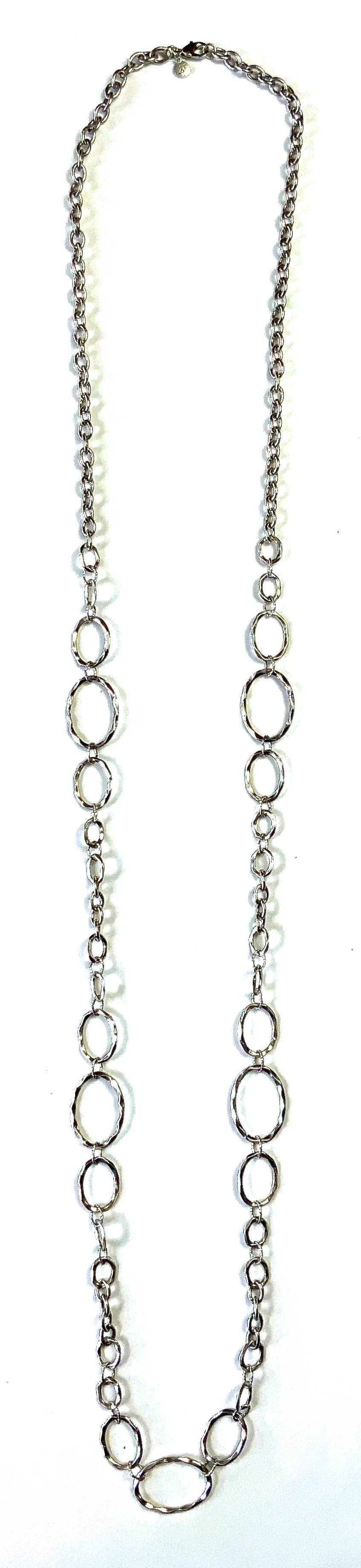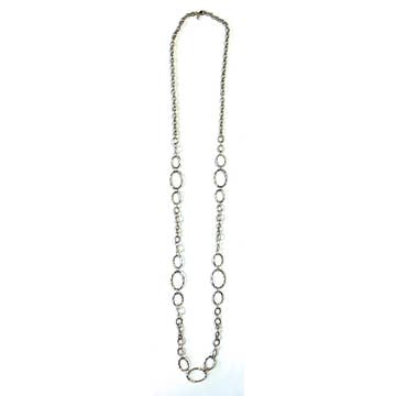 Simple and elegant with an understated yet powerful impact. The Stitched necklace is made of tarnish-resistant Argentium silver stitched with 22k gold or oxidized silver stitched with fine silver. Â Both necklaces are adjustable in length 16" - 20".