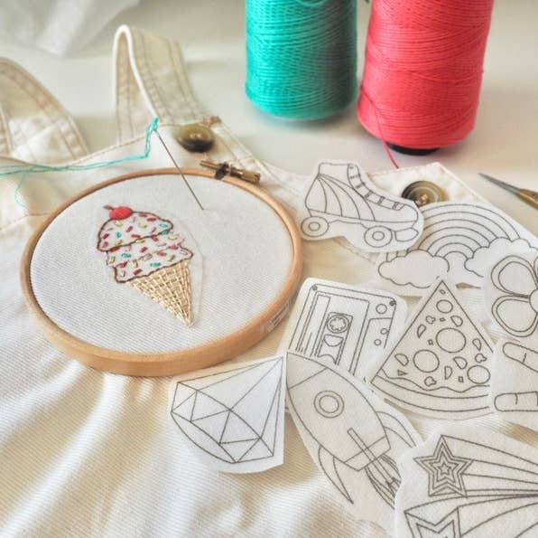 If you've got some old clothes that you can't bear to part with, these DIY embroidery patches are the ultimate way to breathe new life into your favourites. Simply peel off the backing, stick down the pre-printed patch and start stitching! Once your design is complete, submerge your fabric in warm water and watch the patch disappear. Works wonderfully to upcycle all types of clothing, tea towels, bed linen, tote bags, canvas shoes - anything you can stitch onto! Whether you're treating yourself or looking for a gift for the embroidery lover in your life, they're a brilliant way to make use of your embroidery supplies. You're free to use your imagination as you make your project as simple or as complicated as you like using the outline provided, giving your clothes a truly personalised touch. Each pack contains: 10 winter boho designs, approximately 6x4cm in size Printed illustrated instructions & stitch suggestions