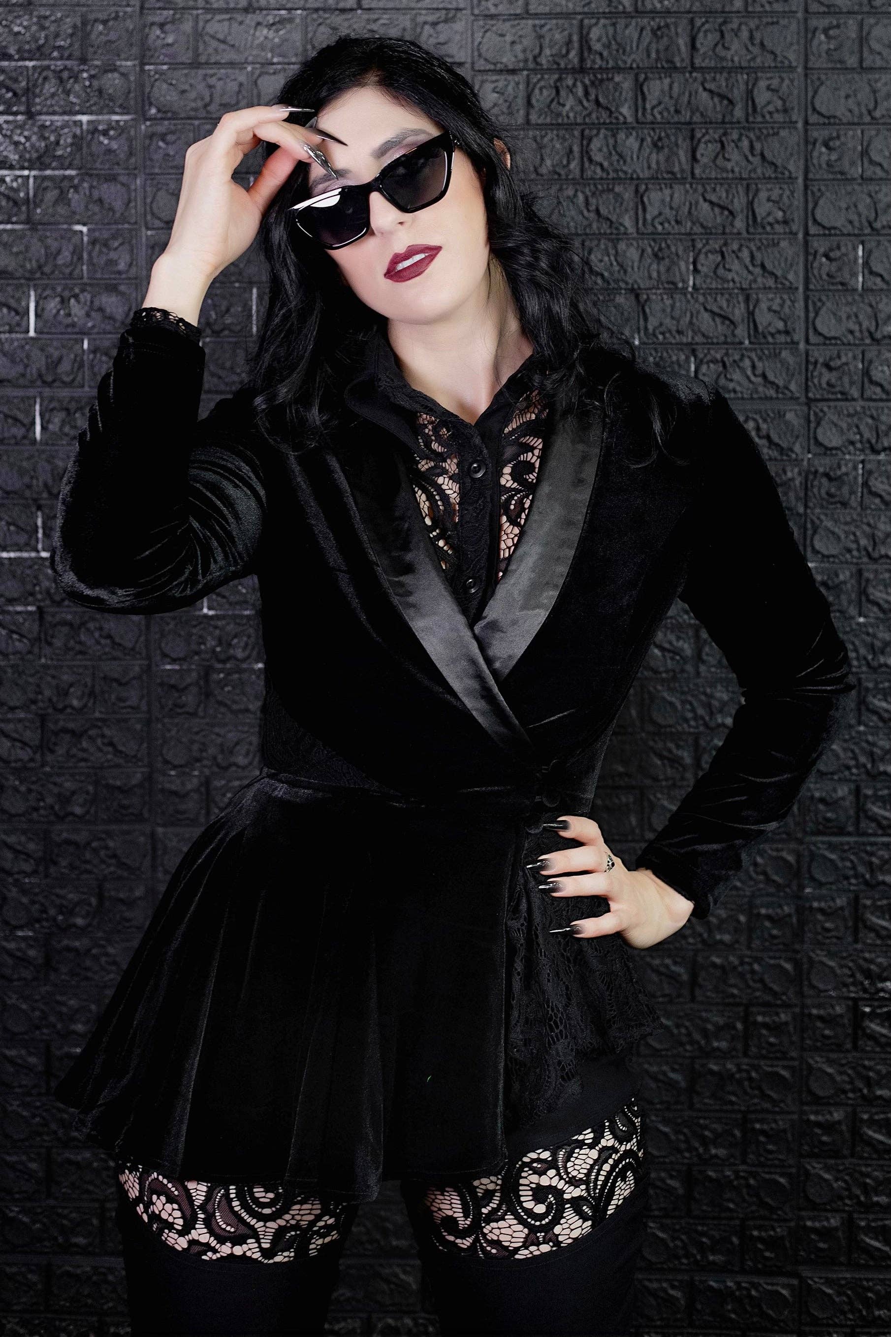 Beauty, fear, and fascination intertwine in the Arachnophobia Maxi Dress. Inspired by the intricate elegance of spiderwebs, this gown embodies Weasel Wear’s devotion to both man-made glamor and natural allure. Crafted from soft, stretchy rayon jersey, this long, luscious silhouette features a sheer spiderweb mesh midriff peekaboo panel that adds just the right touch of mystery. Two hidden spiderweb inserts in the skirt reveal themselves only in motion, a haunting detail for those who love subtle drama. The adjustable straps, lightly padded bust, and hidden back zipper ensure all-day comfort, while the fluid stretch fabric invites movement that’s pure magic. Featuring: – Soft stretch rayon jersey for comfort and flow – Spiderweb mesh midriff panel for gothic allure – Hidden spiderweb skirt insets revealed as you walk – Adjustable straps + light bust padding for structure – Hidden back zipper for seamless fit Materials: Rayon Jersey + Spiderweb Mesh Perfect for date nights, cons, or moonlit strolls through your favorite amusement park. The Arachnophobia Maxi Dress was made for those who walk the line between elegance and enigma. Fit Note: Includes significant stretch. SIZE BUST WAIST HIP XS 33" 25" 35" S 35" 27" 38" M 37" 29" 40" L 40" 32" 43" XL 43" 35.5" 46" XXL 46.5" 38.5" 49" <