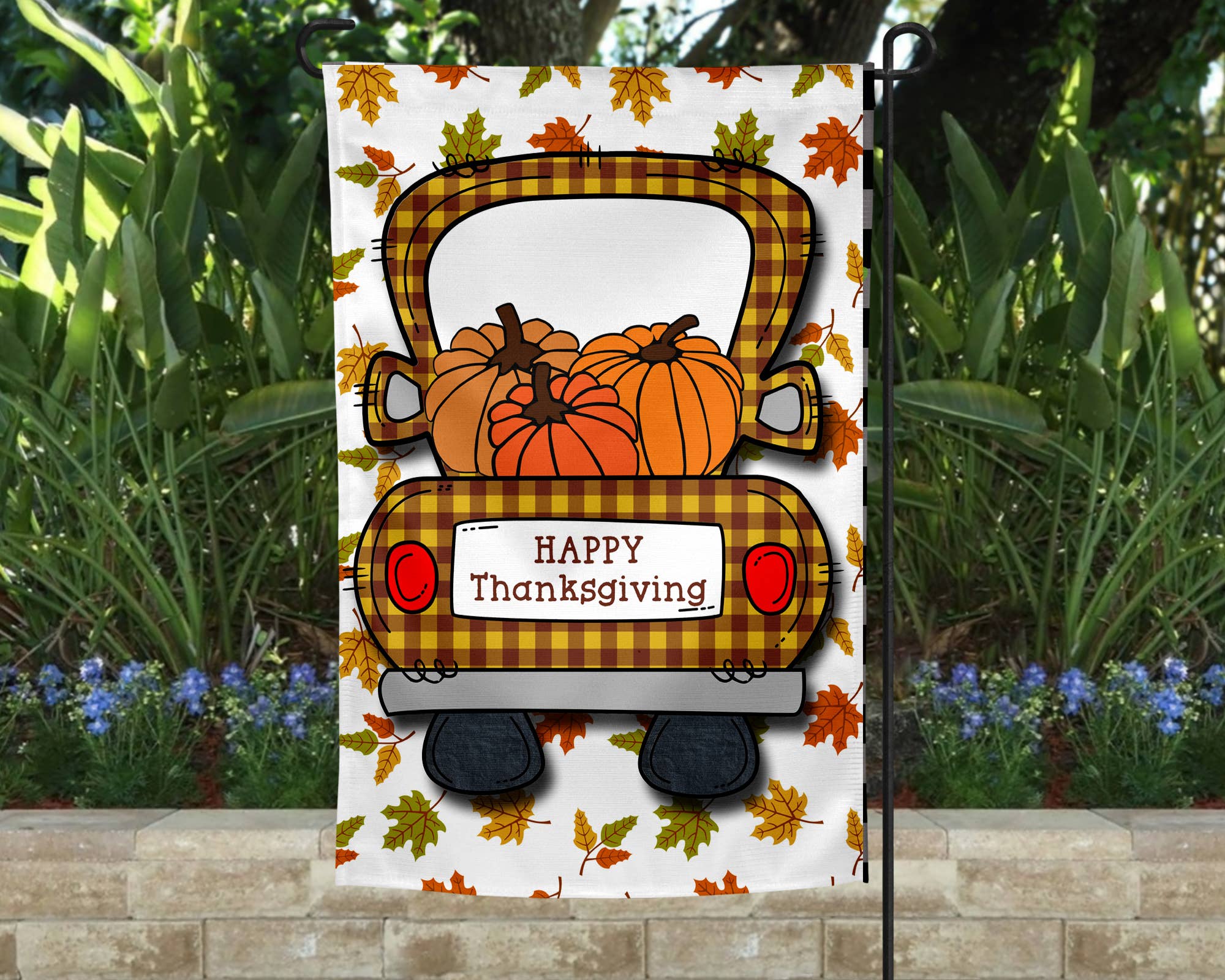 Garden Flag - Gobble Turkey with Plaid Fall Thanksgiving