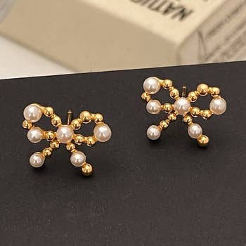 Wholesale Seed And Mini Pearl Beaded Flower Stud Earrings