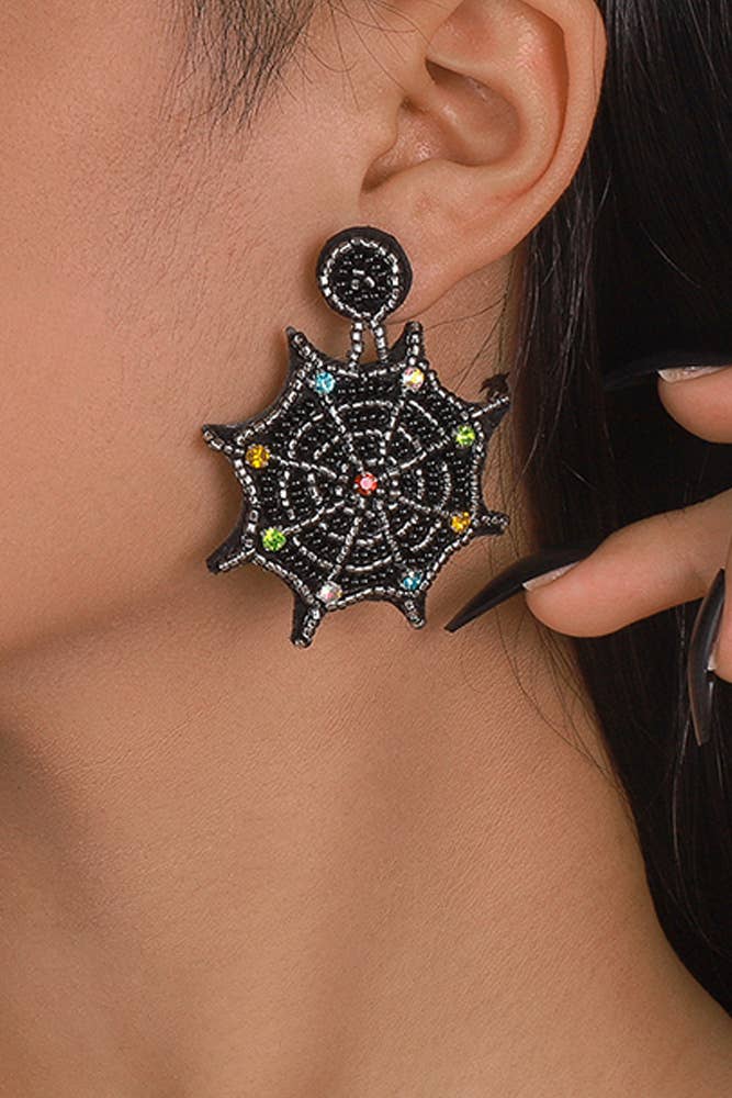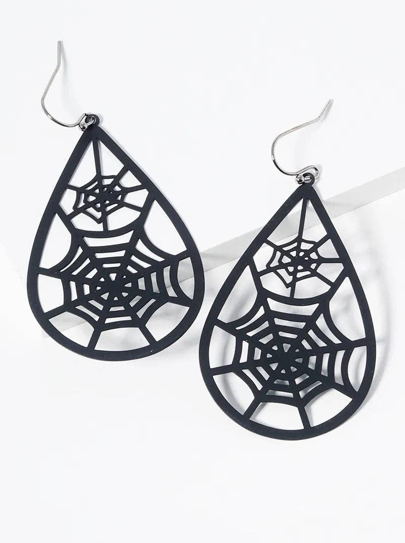 Suggested retail for one pair is 16-22! Our Spider Webs in Magic Mist feature: *Magic Mist Gold Dust and Purple Dust Black Shimmer Acrylic *Spider Web measures 2.75" from top of hook *Hooks are Gunmetal-toned Stainless Steel *Lightweight *Great for sensitive ears *Made in the USA Always wear rubber backs with dangle style earrings