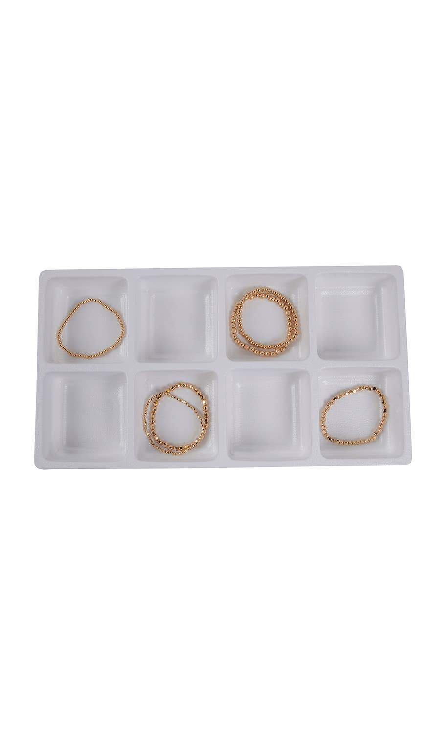 White Plastic Tray Inserts with 32 Compartment Sections is an essential jewelry insert that acts as a displayer and organizer in one. Each compartment is designed to hold jewelry components and accessories with ease. The tray is made from a rigid molded plastic. These trays are designed to be used along with our 14" jewelry trays.