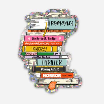 Book Lovers Multi-Genres Stack Sticker - Glitter Waterproof