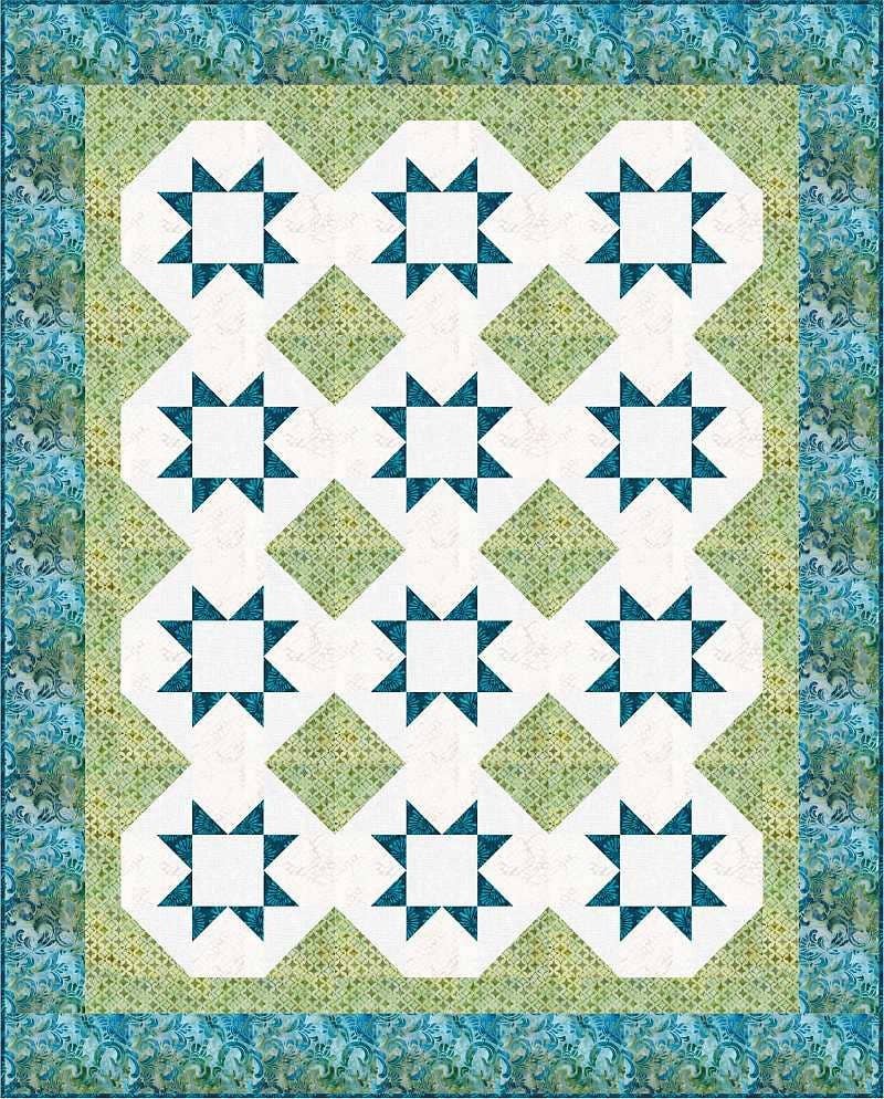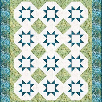 This basket weave quilt is a throwback to a traditional block. It just got a remake. Batiks make up not only the blue weave but the cream background as well. The blues are placed in a way that the shades flow from light at the top to dark at the bottom. The background is comprised of a mix of creams in a scattered arrangement. Each quilt will be just a bit unique because of the random placement of the cream background pieces. Finished size: 68" x 85"