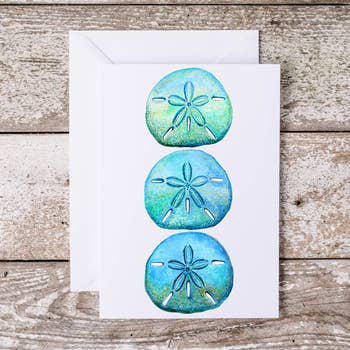 Wholesale Hand painted coastal card, Watercolor beach and shell