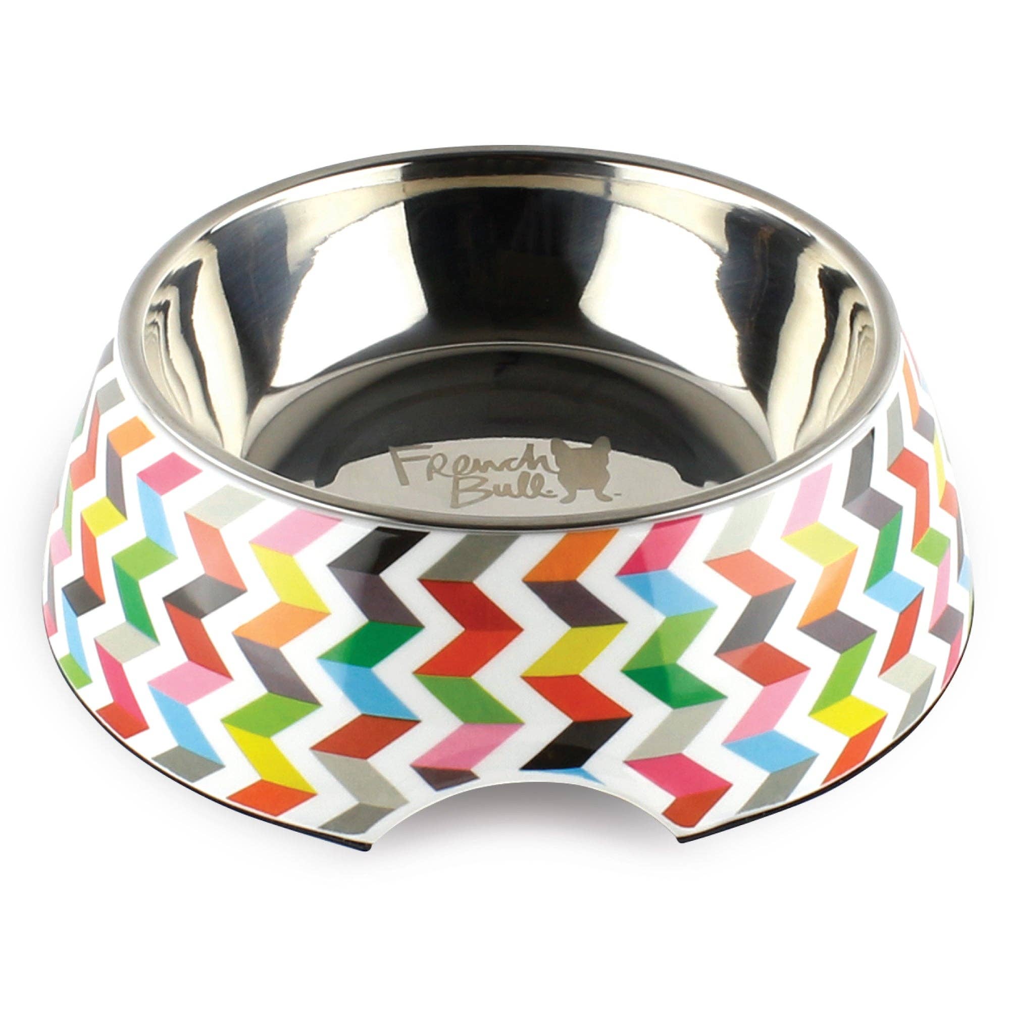Beautiful 2 in one pet bowl. Features: * BPA-free plastic bowl with non-slip base. Includes stainless steel insert. * Great for dry and wet foods. Suitable for cats and dogs. Use for indoor and outdoor pets. * Dishwasher safe, hand wash recommended. Do not use in the microwave. * Measurements: 7"D x 2.5"H; 12 oz. ____________________ About Ziggy Ziggy is an Iconic French Bull pattern that epitomizes the brand's passion for color relationships and its modern aesthetic. Ziggy's optical illusions make every look feel like you are seeing it for the first time.