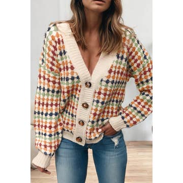 Wholesale Argyle Bow Detail Knit Cardigan LSW0973