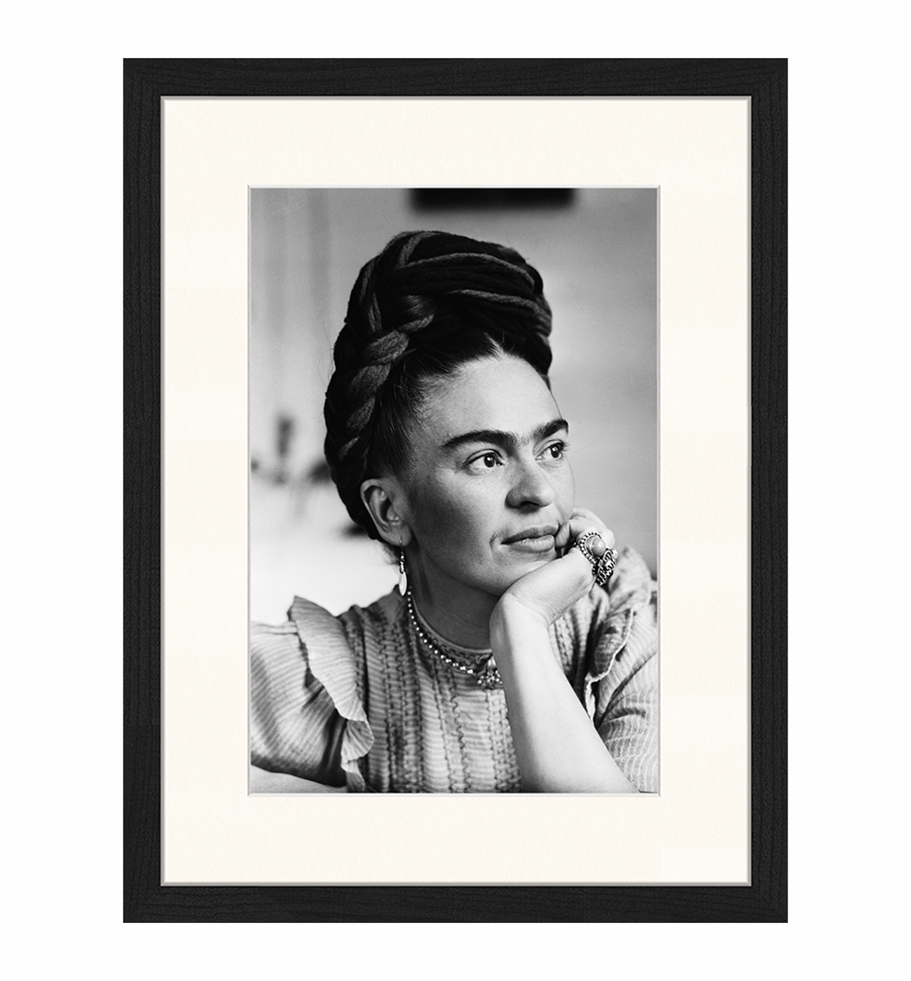 Thoughtful - Frida Kahlo. It Comes With High Quality photoprint with passe partout, plexiglass in black wooden frame.
