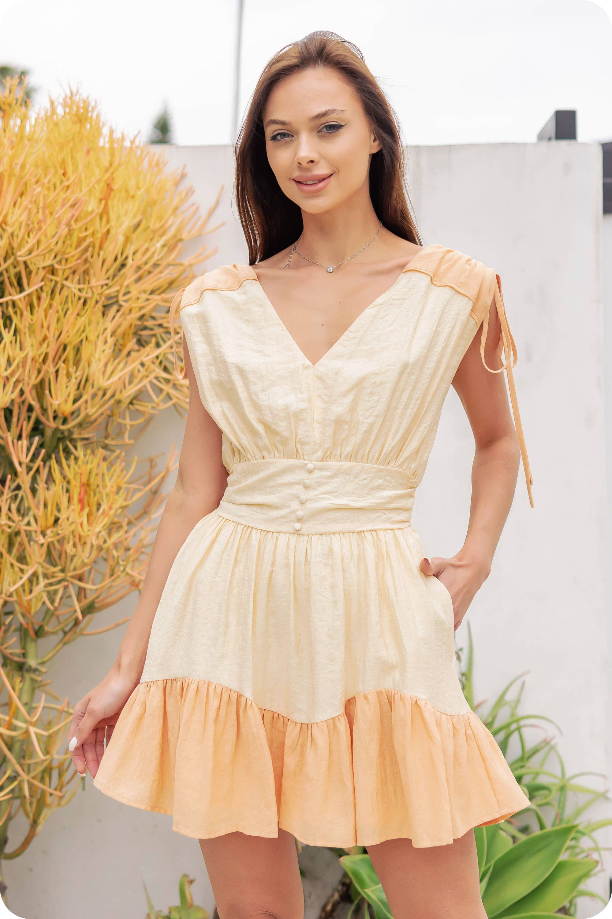 No reviews for Summer Beige Ruffle Sleeveless Dress JRM080 yet.