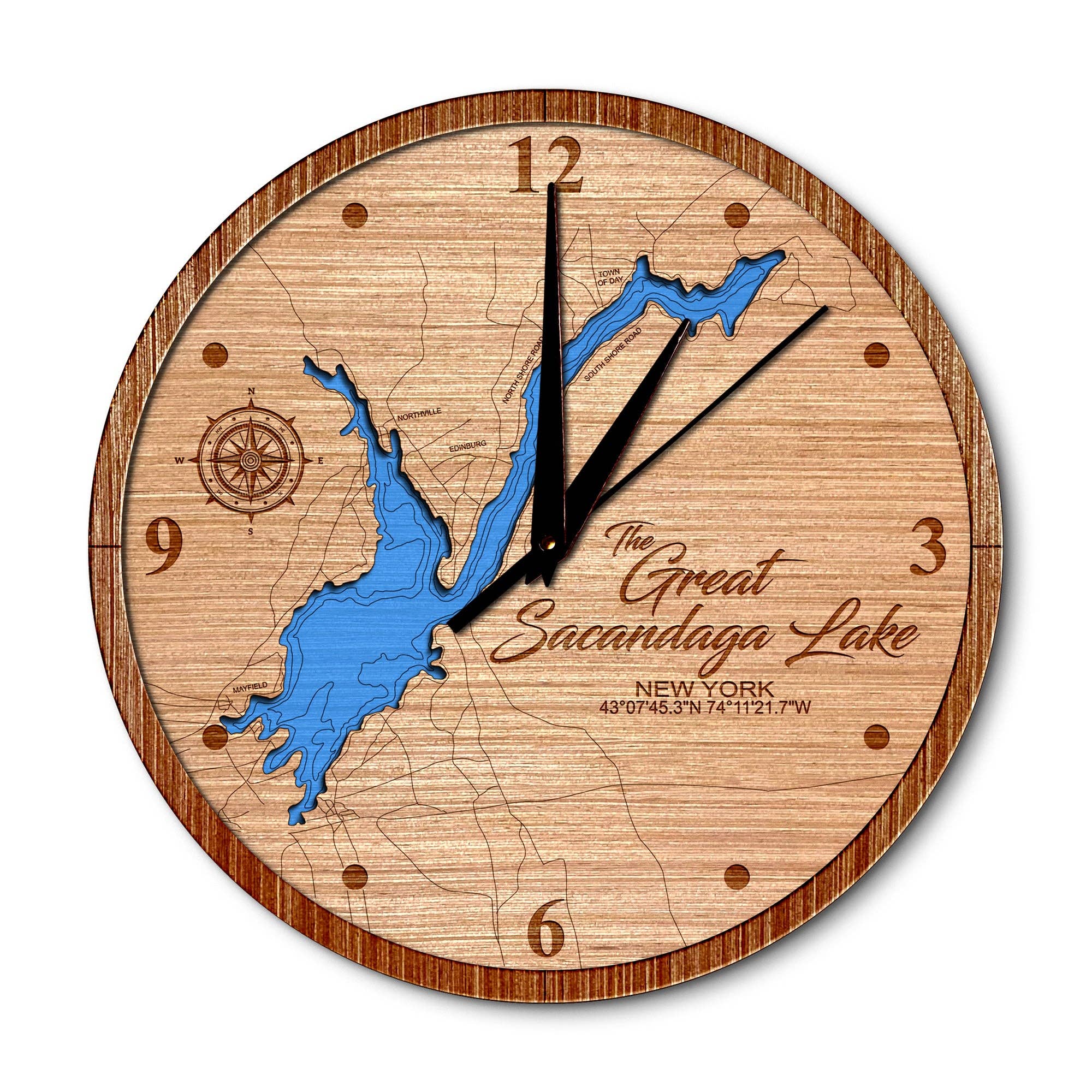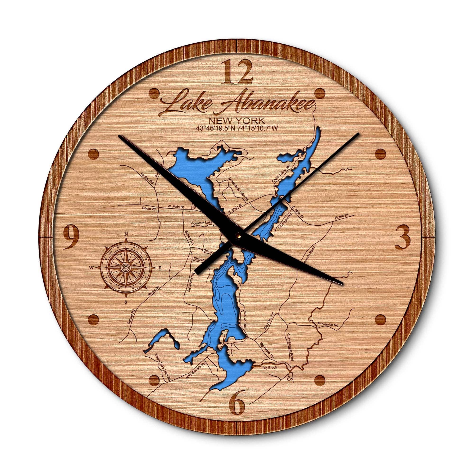 Wholesale Claytor Lake Virginia Nautical Map Wood Wall Clock - 2 Level