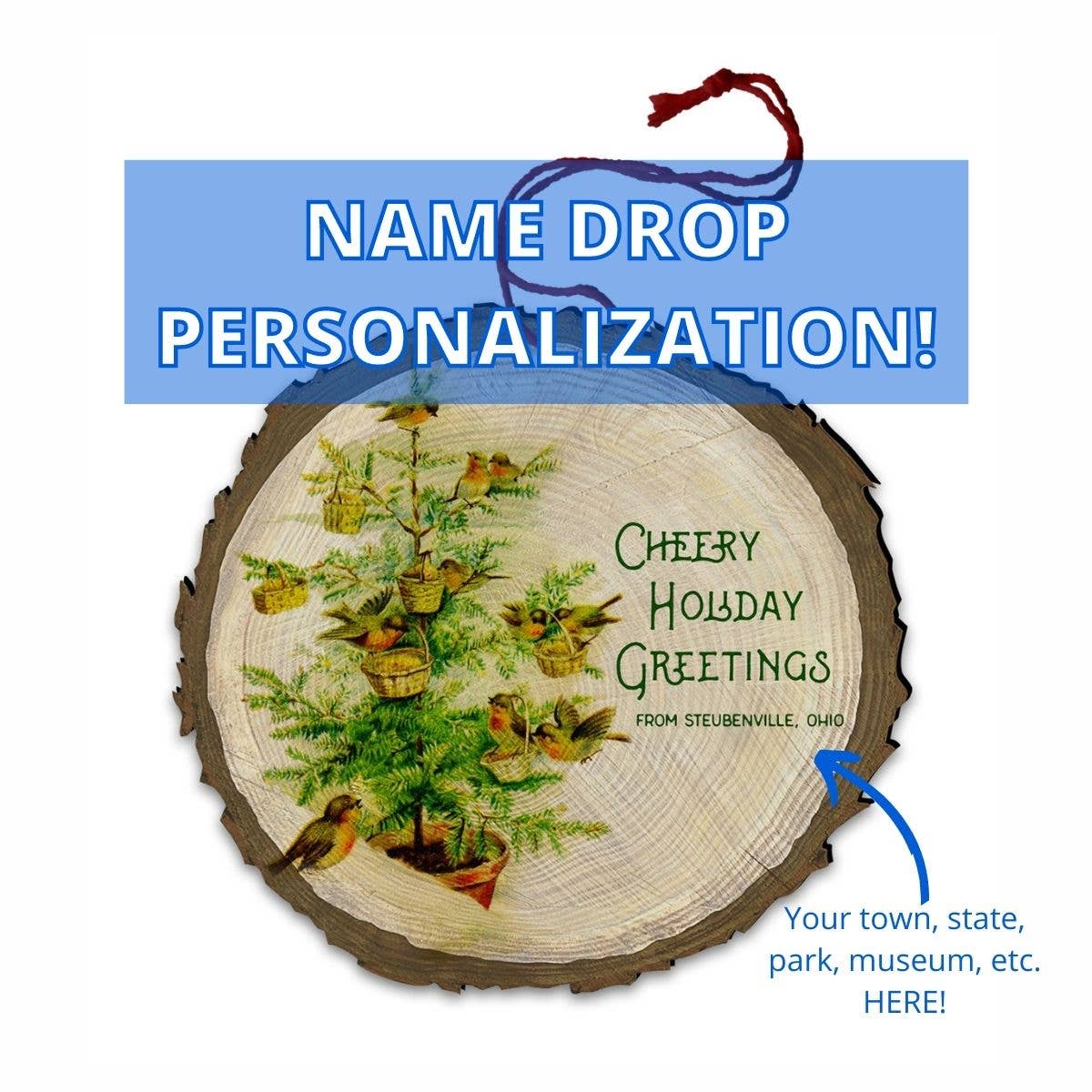 SKU: ORNC-IN Made in United States Color: Blue and Yellow Material: Wood Occasion Theme: Christmas Season: Holiday Season and Winter Style: Novelty Theme: Travel & Adventure
