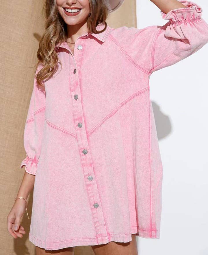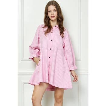 Made in United States Aesthetic: Active and Casual Care Instructions: Hand wash Fabric: 74%Cotton 26%Polyester Fit: Contemporary Neckline: Collared Occasion Theme: Everyday Occasion: Everyday Pattern: Solid Season: Capsule Skirt & Dress Length: Mini Sleeve Length: Long Sleeve Product Language: English