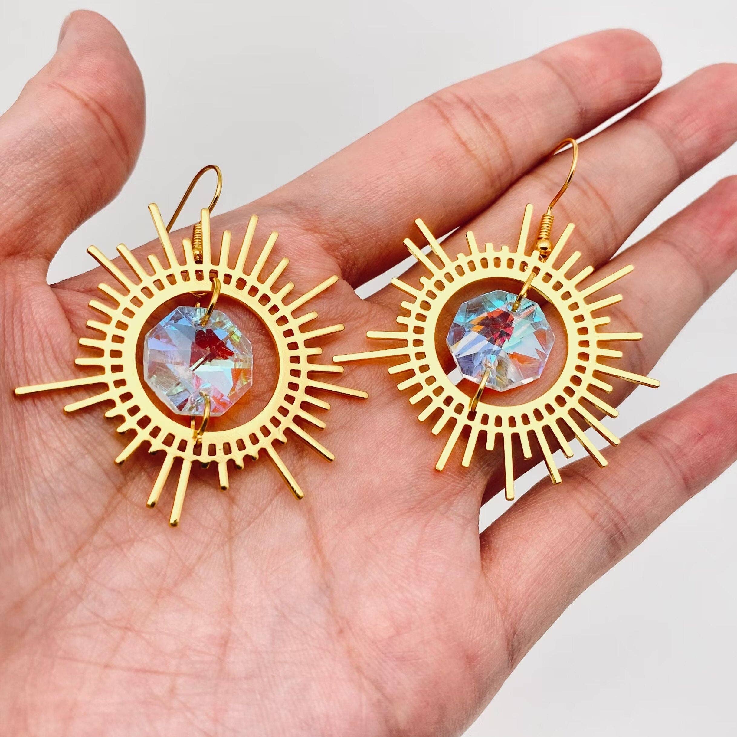 SKU: Aurora Dangle Earrings Made in United States Color: Multi-Colored Material: Acrylic and Gold Plated Weight: 28.35 g (1 oz)