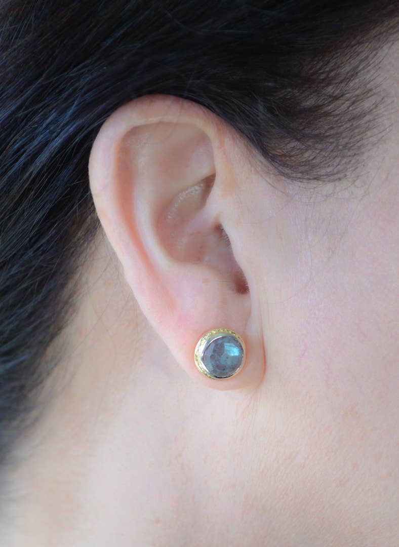 Labradorite Earrings With Hammered Post
