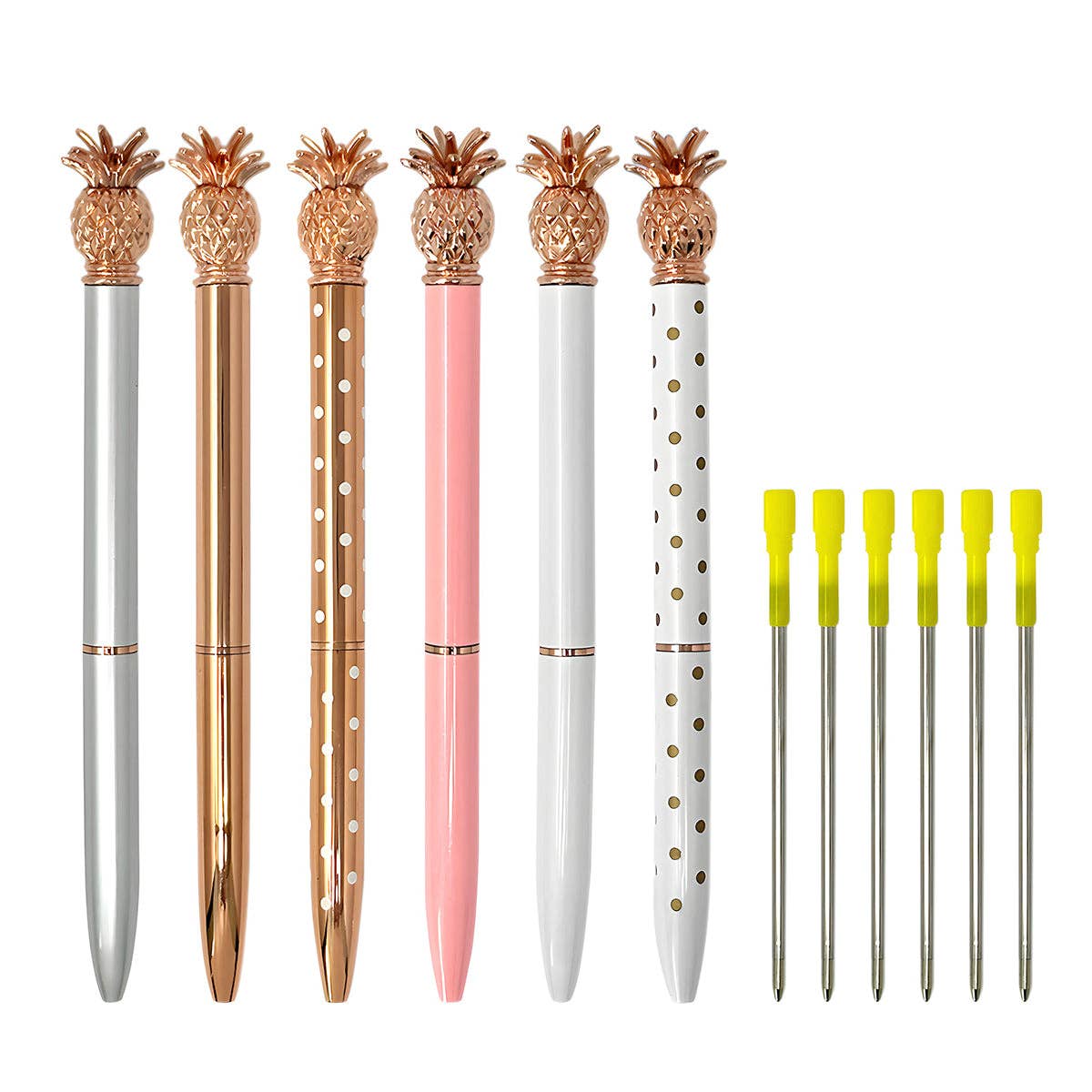 Wrapables Pineapple Pens, (Set of 6 Pens + 6 Refills)
