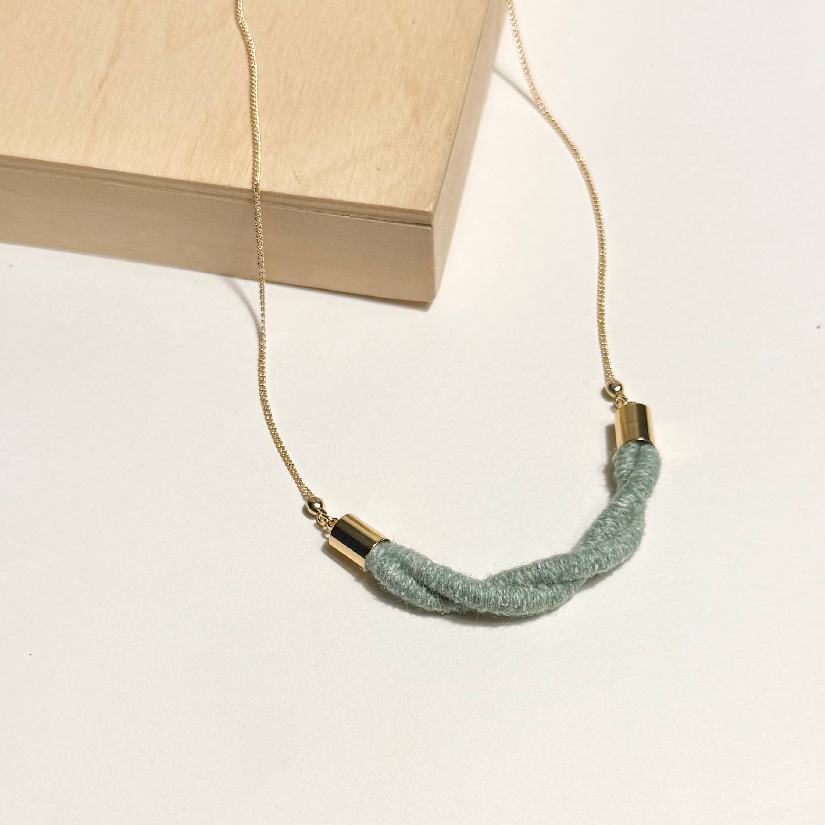 Based on the original namesake, the colorblocked version provides a pop of color interest to any outfit. Wear as a singular pendant or layer with other chains. Shown in Color Combination #6. * Cording hand-wrapped in the yarn(s) of your choice * The ~2" fiber links are hand-stitched in place * 1.6mm dainty gold-plated curb chain * 18K gold-plated end caps, figure 8 eye ring, and lobster clasp Options: * Yarn color(s) (please refer to the last photo for color names) * Chain length: 18", 22" or 32" View the complete Fiber + Chain Necklace collection: https://www.faire.com/product-based-collection/pbc_vsb4yfzcab Handmade in Northeast Ohio by Sara McClelland. Made to order and ships in the timeframe currently noted.