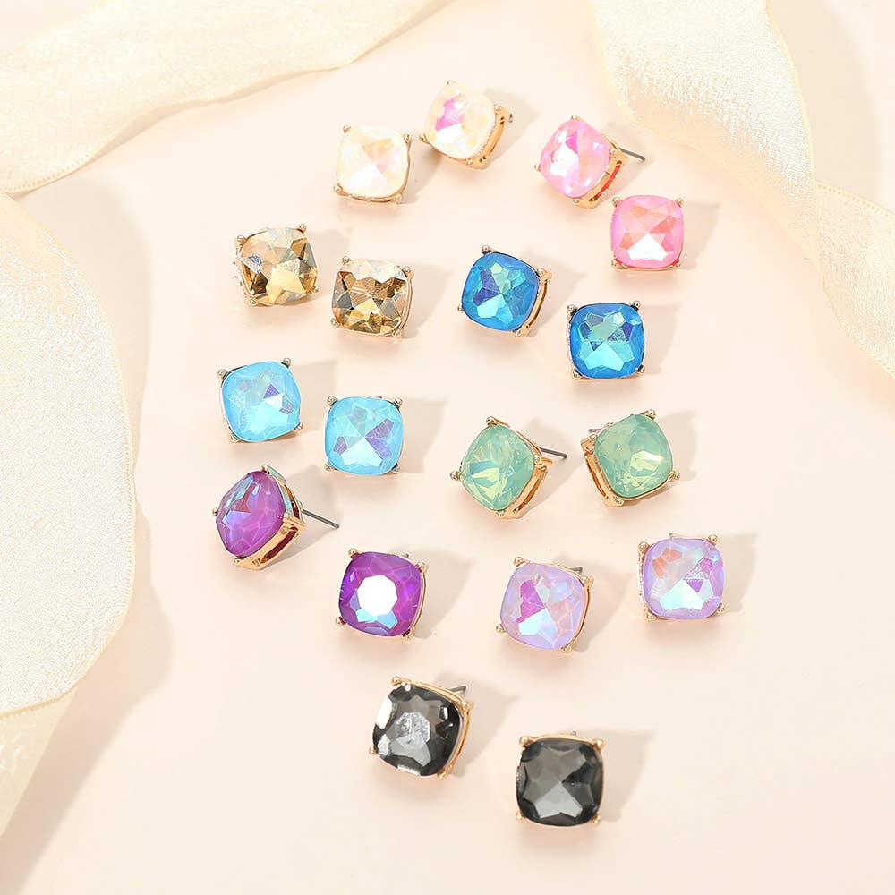Baguette Cut Stone Stud Earrings