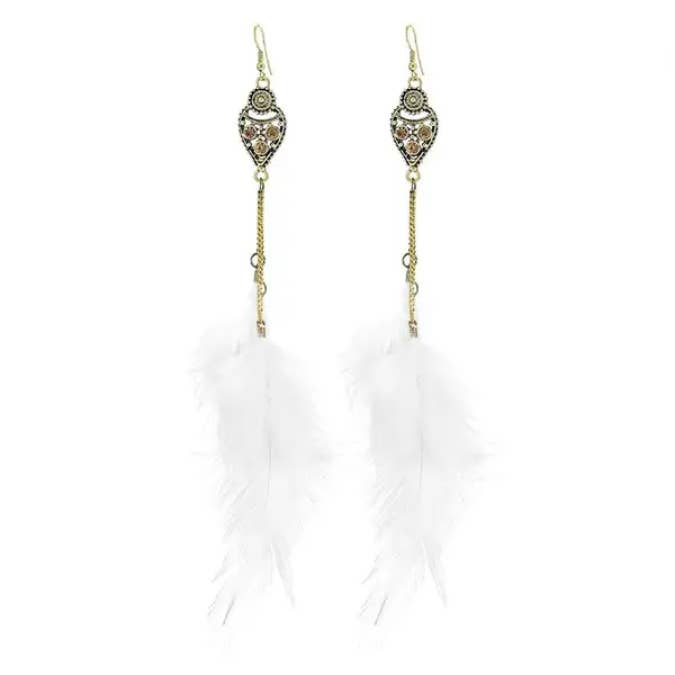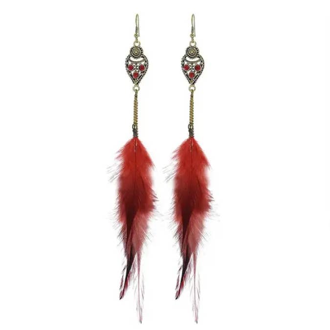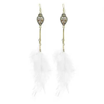 Feather Pendant Round Hollow out Woven Earrings Bohemian