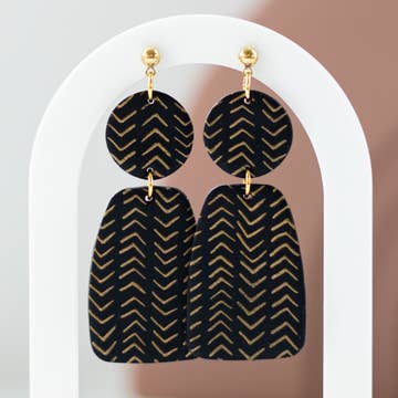 • Color: Noir • Lightweight premium Black Leather + Gold Plated Brass • Size: 2.5" L x .80" W (including hardware) • Nickel-free hypoallergenic stainless steel gold plated hooks • Handmade in the Midwest