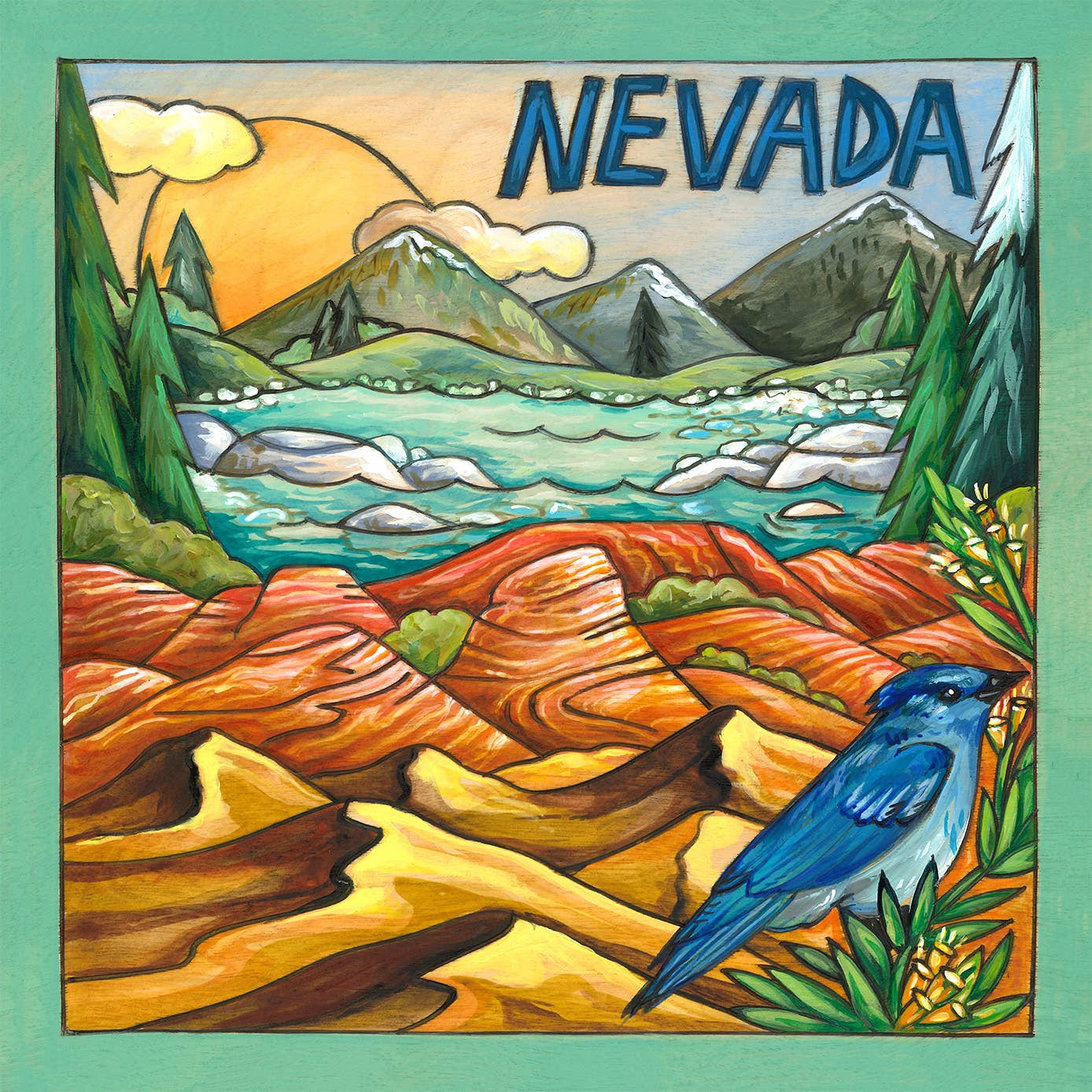 "Silver State" Indiana Lazy Susan Nevada state lazy susan Every Sincerely, Sticks piece is printed with love in Des Moines, Iowa, USA.