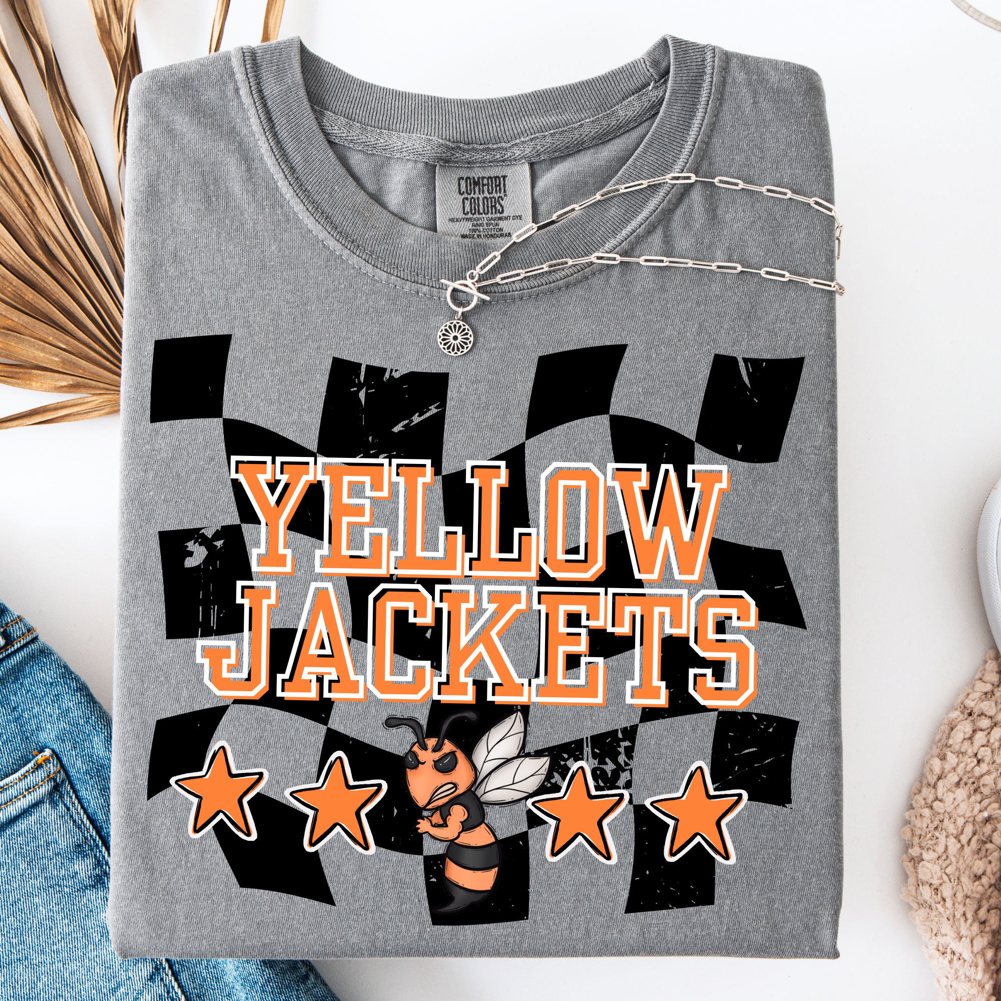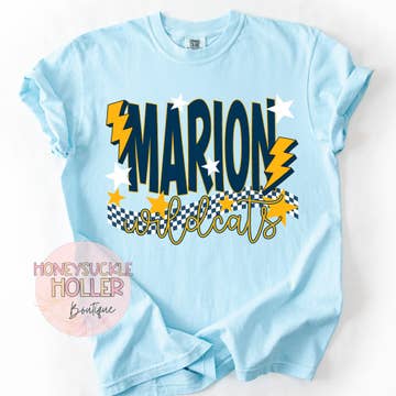Preppy, punchy, and perfect for school spirit! The Block Letter Checker Graphic Tee rocks a standout checkerboard “M,” paired with a sassy mascot and script lettering. It’s a boutique fave for students, parents, and teachers alike. Available in multiple school colors Comfort Colors brand for that lived-in feel Ideal for football games, fundraisers & team events Add your own school letter and name – fully customizable! Easy to customize with school name or mascot. To order on a custom color, or to get a mock up, please email info@festiviteeswholesale.com