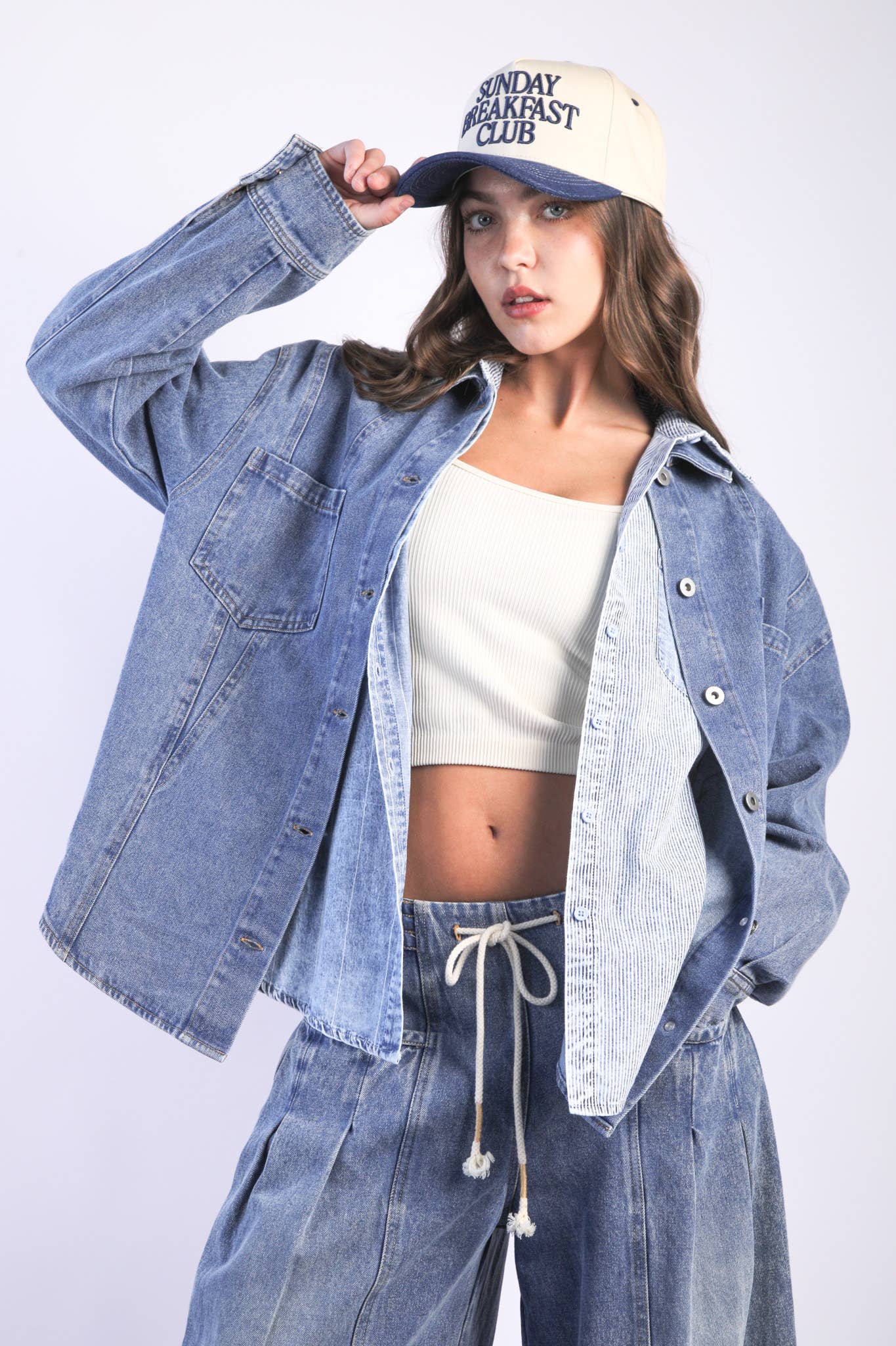 Wholesale Button Down Placket Stretch Denim Tube Top