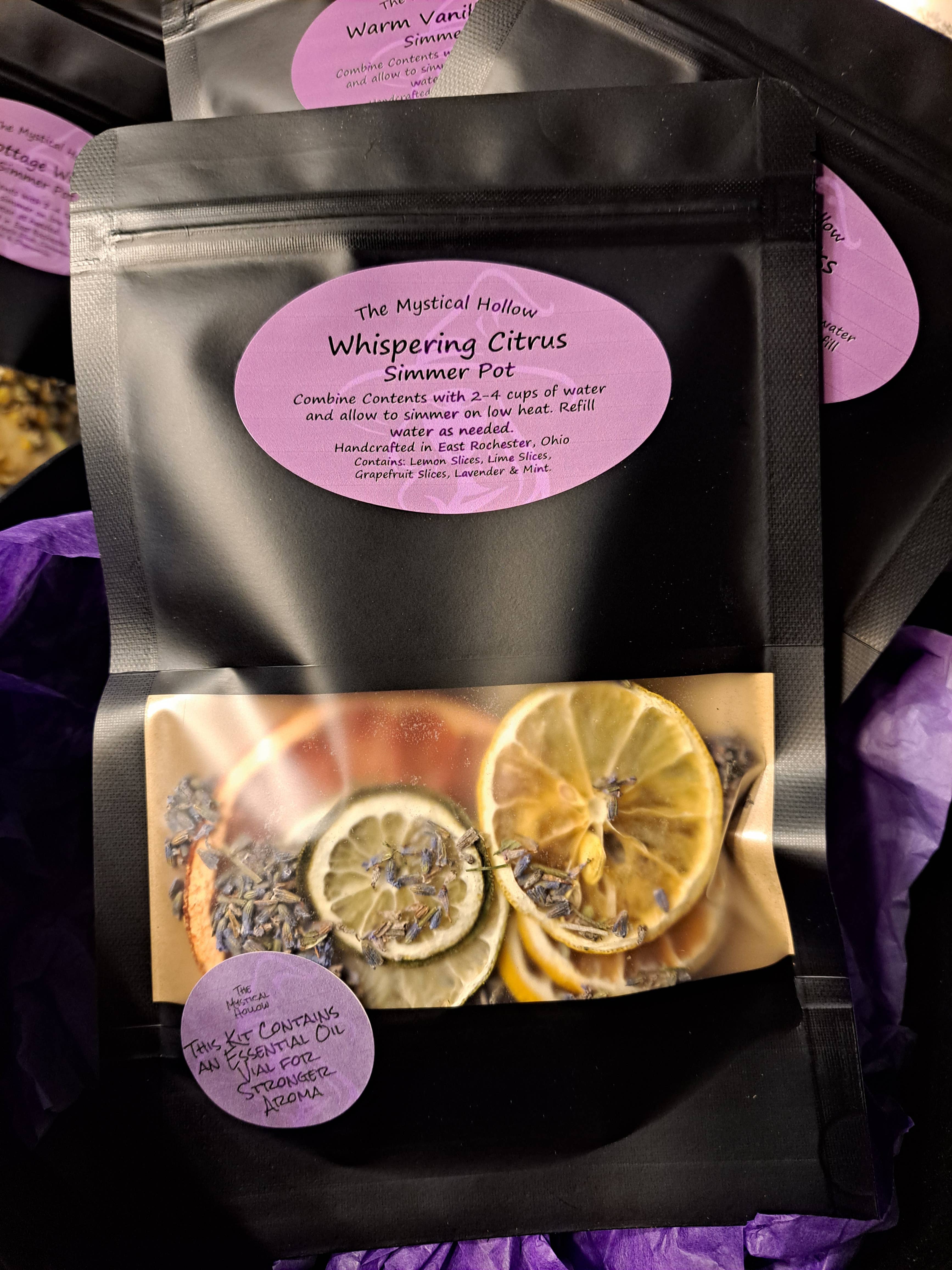 Transform your home into a sanctuary of soothing aromas with our Serenade Simmer Pot Kit. This handcrafted stovetop potpourri blend features a harmonious combination of lavender, rose, and orange, creating a calming yet uplifting ambiance. Enjoy a natural, non-toxic way to refresh your space without artificial fragrances. Features - Lavender – Known for its relaxing properties, lavender fills your space with a gentle floral aroma that promotes stress relief. - Rose Petals – Rose adds a delicate, romantic fragrance. - Orange - Bright and citrusy, orange infuses warmth and energy, perfectly balancing the floral notes. How to Use In a small saucepan, combine this potpourri packet and 4 cups of water. Bring to a boil, then simmer on low. Add water as needed to keep ingredients covered. Enjoy the refreshing aroma! Don’t leave your simmer pot unattended. Check back frequently to ensure ingredients remain covered with water. Ingredients Dried Lavender, Dried Orange, Dried Rose