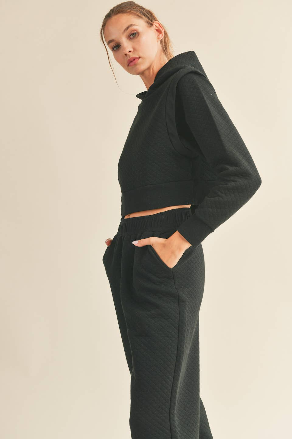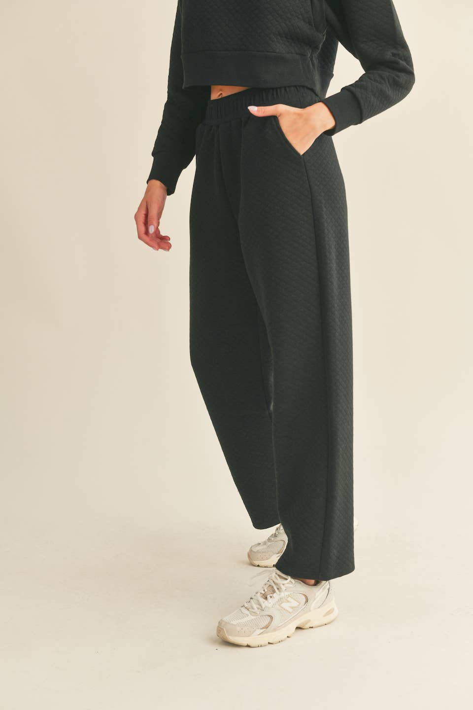 Grey High Waist Quilted Wide Leg Pant