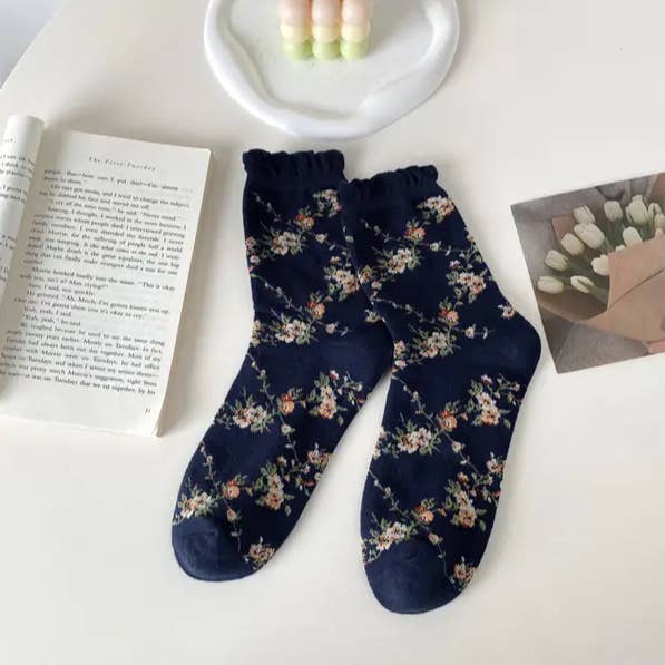 Vintage Embossed Butterfly and Floral Socks