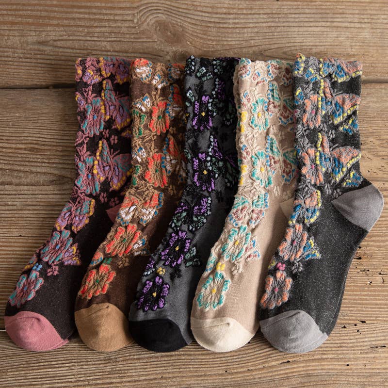 Vintage Embossed Butterfly and Floral Socks