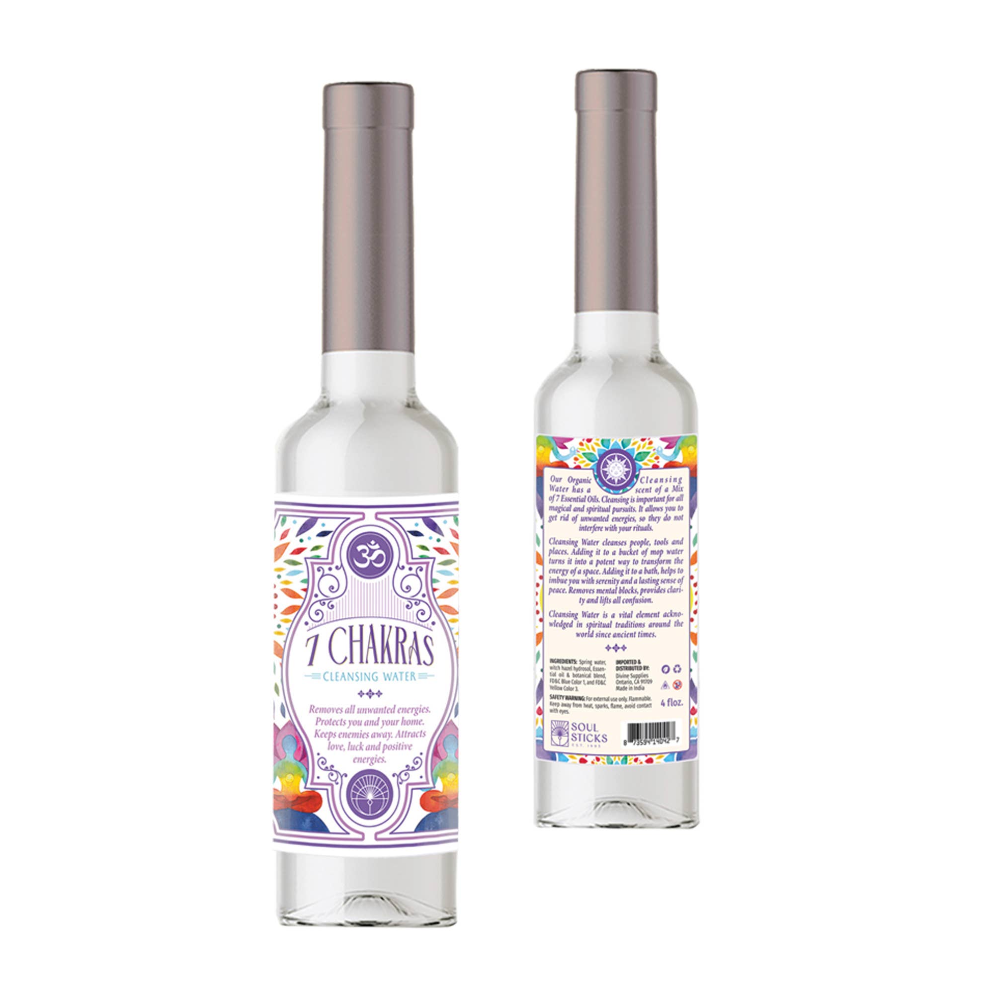 7.5 oz. Plastic Bottle w/ Positive Vibes Cleansing Water Spiritual Cleansing Water is often used in various cultural and religious practices, holds significance beyond physical purification. It's a symbolic medium to cleanse the spirit and environment, promoting harmony and balance. Created through rituals, it combines water's purity with spiritual intent. Ingredients like herbs, oils, or crystals are added, each carrying unique energies. During use, practitioners may sprinkle or spray it to cleanse spaces, objects, or themselves. The process aims to dispel negativity, invite positive energies, and enhance spiritual connection. It's a ritualistic bridge between the physical and metaphysical, fostering a renewed sense of tranquility and renewal.