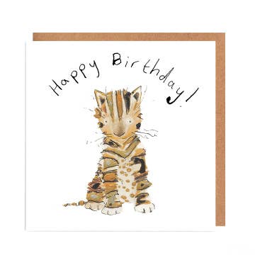 This birthday card features Posy - also known as the 'sofa scratcher'! 'Posy' is taken from the book 'Posy' by Linda Newberry that I illustrated in 2009. Posy the kitten is full of mischief...so perfect for any mischievous birthday boys and girls of any age! The card is printed on lovely heavyweight watercolour card and measures 142mm square. It comes with a brown Kraft envelope and is blank inside.