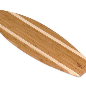 This stunning Surfboard made from Bamboo with a captured ocean scene and waves in a gradient of blues will bring Aloha feelings to any home! Made with food-safe, non-toxic resin - right here on Maui, HI. These boards are not only functional, but eye-catching as well! Don't have much space in your kitchen? No problem - just hang them on the wall and use them as an Ocean display! 3-in-1 use: Serve food on front, cut on back, hang on the wall to display while not in use! Care Instructions: Simply wipe with a damp cloth and some dish soap. Scrubbing or dishwasher use is NOT RECOMMENDED. Heat resistant up to 300 degrees (resin part). Please do NOT cut on the part of the resin, as it will scratch the material. These are ideal for hosting! Measurements: Small Surfboard: 14x6 inches Large Surfboard: 23x7 inches Want to stay in touch? Follow us on Instagram @tbm.creations!