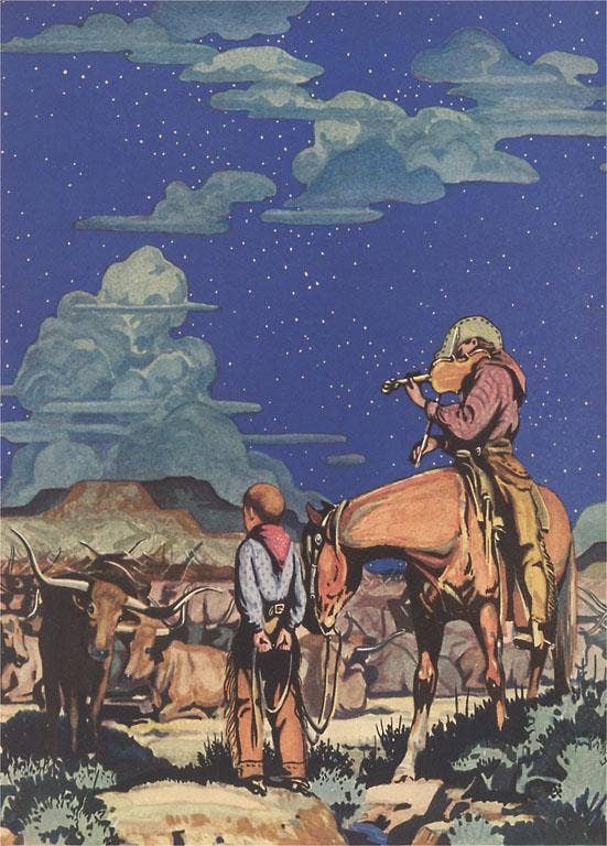Vintage collage vinyl sticker. Sticker Title: Cowboy Moon Dimensions: 2.75" x 3.5" Great size that works well on laptops, water bottles, phones, etc. Matte finish and laminated for scratch and weather protection.
