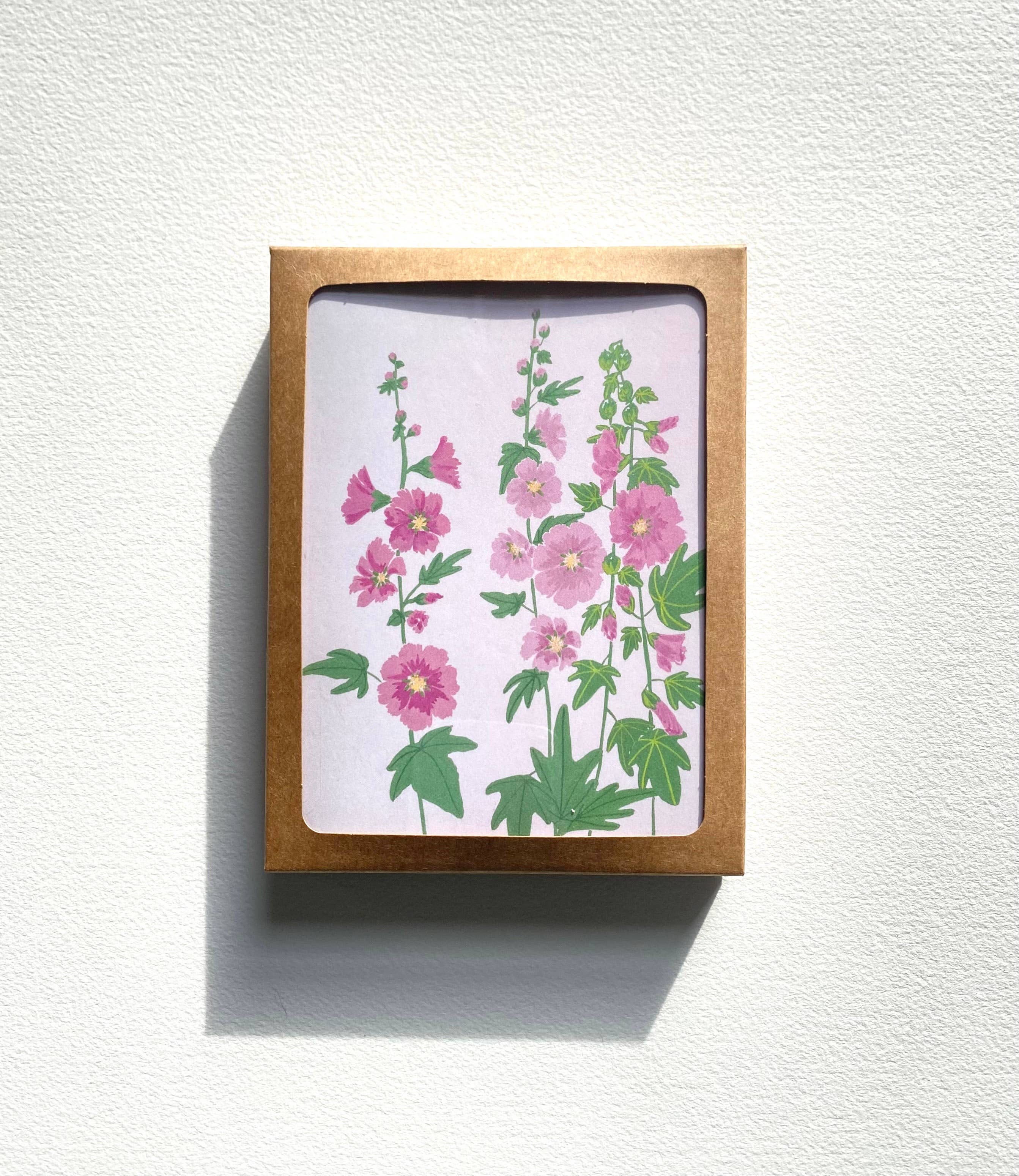 Box set A2 card 5 1/2" x 4 1/4" 8 cards + 8 envelopes - Blank interior - White uncoated paper - 100% recycled white contour flap envelope - Kraft paper window box - Printed on post consumer paper - Made in USA