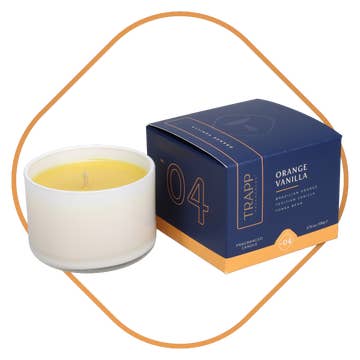 Fragrance Notes: Brazilian Orange, Tahitian Vanilla, Tonka Bean Trapp Orange Vanilla luxury candles are among the most fragrant candles on the market, guaranteed to fill a room with fragrance. Our orange vanilla scented 7 oz. poured candles are poured in a white glass vessel, burn for up to 50 hours and come packaged in a gift-worthy box. Soy wax blend burns cleaner to enhance your fragrance experience. Crisp notes of Brazilian orange are softened with rich Tahitian vanilla to create a smooth and comforting fragrance. Tonka bean adds dimension that elevates the other notes. More than any other piece of home decor, a candle is a sign of life. If a candle is lit, that means someone is home. With ingredients sourced from the highest-quality botanicals, Trapp products are filled with more fragrance than anything else on the shelf. • 7 ounce soy wax blend candle • Approximate burn time of 50 hours • Candle comes packaged in a gift-worthy box • Guaranteed to fill your room with fragrance