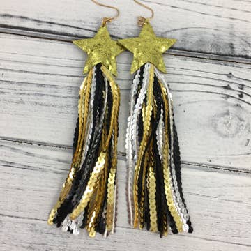 Even Mrs. Claus wants these festive earrings under the tree! Nickel-safe with a beaded star post, these tiered tassel tree earrings are decorated with beaded garland and colorful ornaments. Quick Features: • Festive tassel Christmas trees • Beaded garland with colorful ornaments • Beaded star post • 3 styles: gold, red, silver Merchandising Details: • Carded & peggable • Ships in a free counter display