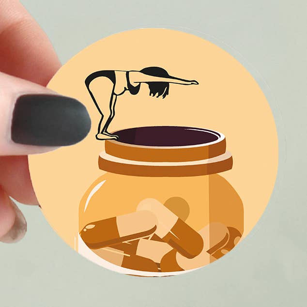 Ready to dive into happy hour? This playful sticker features a figure poised to leap into an oversized martini glass, complete with a lime garnish. It's a cheeky celebration of cocktail culture and those moments when you're ready to fully commit to unwinding. Whether you're a martini enthusiast or just appreciate the art of a well-deserved drink, this design captures the spirit of diving in headfirst. Key Features: Paper: Barracuda Sheen Sticker Light 80gsm Diameter: 51mm Sticker Cutting: Individually Cut Sticker Style: Circular