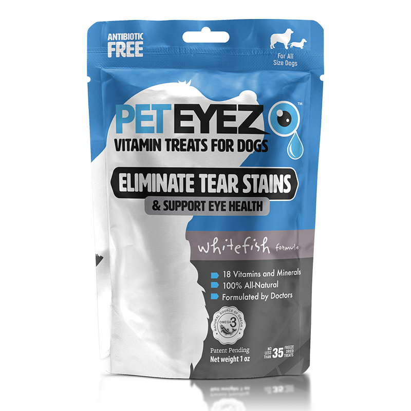 PetEyez brands of products are the Leader in Pet Eye Health. Our PetEye treats eliminate tear stains and support eye health, this freeze-dried functional treat is guaranteed to work in 30 days or less or we will give your money back. Packed with antioxidants and vitamins, there are no grains, no fillers, no byproducts and no antibiotics. Protect from cataracts, dry eyes, cherry-eye, allergy eyes, glaucoma and other common pet eye conditions.