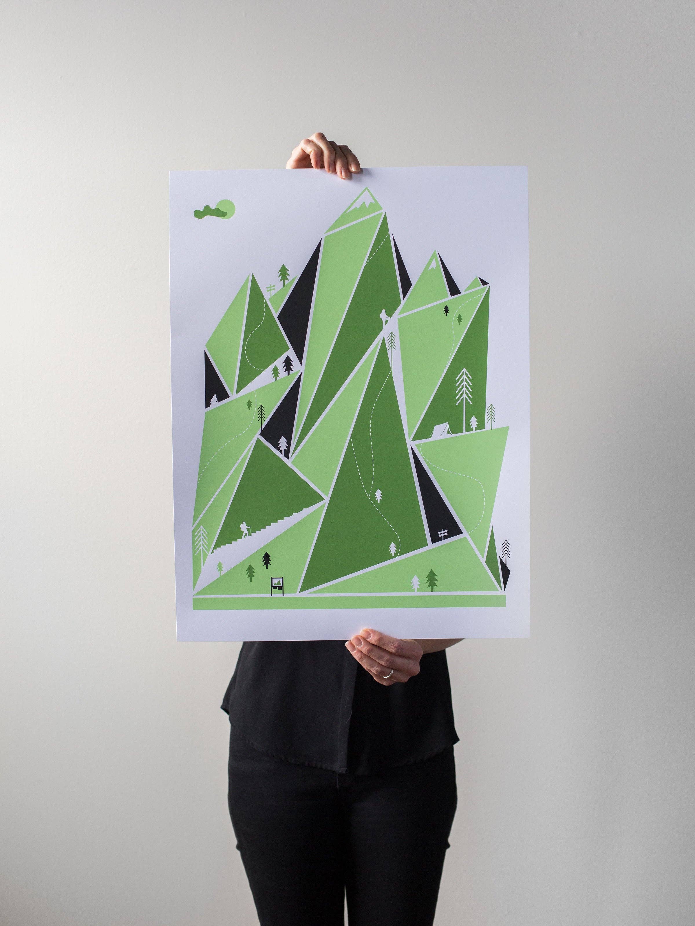 Follow the Pacific Crest Trail (PCT) about 2,650 miles through three states: California, Oregon, Washington, and into Canada. Our print captures all the spots along the way! - 11" x 14" DIGITAL PRINT - 18" x 24" DIGITAL PRINT - Prints are sold unframed but are standard frame sizes - Part of our Triple Crown series