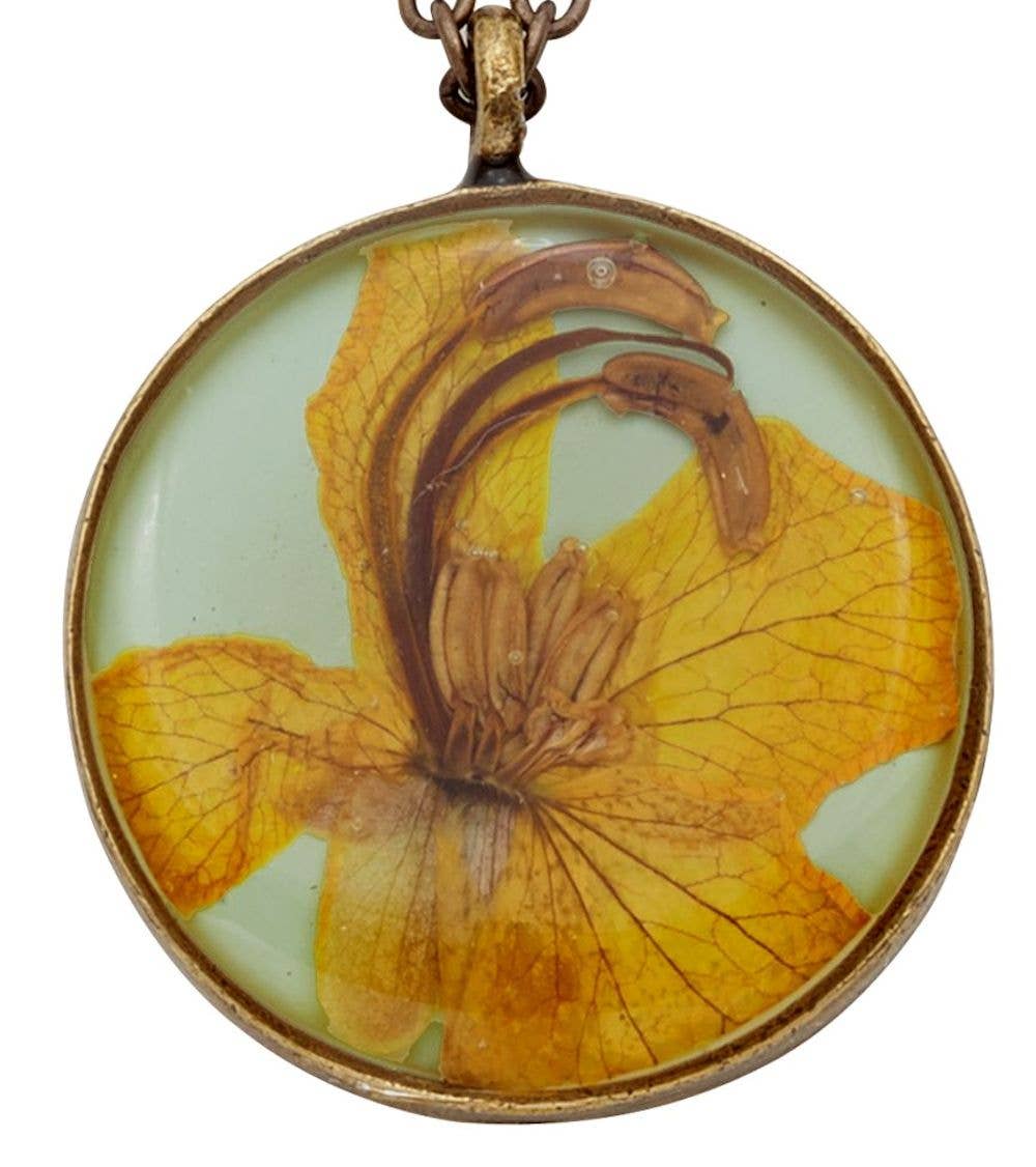 Genuine Queen Anne's Lace flower on "Blood Orange" set in pewter cast settings with shiny sterling silver plating. Setting measures 1.5" x 1.25". All models for castings were made in house by our master model maker and are cast and plated in Rhode Island. Sterling silver plated chain measure 16" plus a 2" extension.