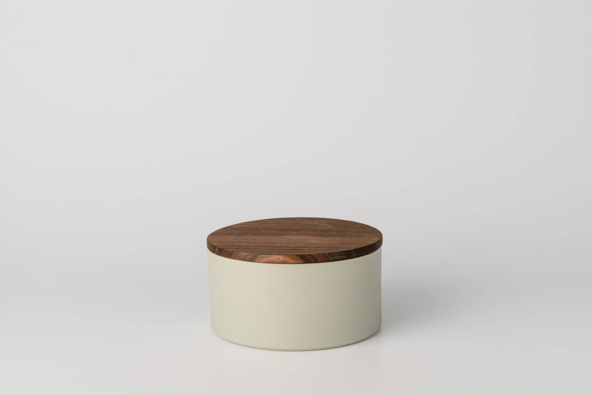 The set consists of a ceramic salt cellar and pepper pot and a wooden tray. The ceramic elements are characterized by a matt outer surface that enhances the purity of colour and feel, and by a gloss interior. The Italian walnut tray is crafted to hold the salt cellar and pepper pot firmly in place. The simplicity of the elegant and timeless shapes makes the perfect set for all occasions.