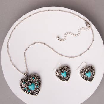 Patina 3-Layered Hammered Heart Pendant Necklace & Earrings Set Other color opitions are FR2871, FR2766, FR2873, FR2874. FR6765 Patina 3-Layered Hammered Heart Pendant Necklace Heart / Love Metal Pendant Necklace & Earrings Valentine's Day Jewelry Valentine's Day & Valentine Gifts Length : 16 3/8" + EXT 2" Pendant : 1" X 1 3/8" Earring : 11/16" X 1 5/16" Earring Closure : Fish Hook Zinc, Fish Hook: Brass Lead & Nickel & Cadmium Free