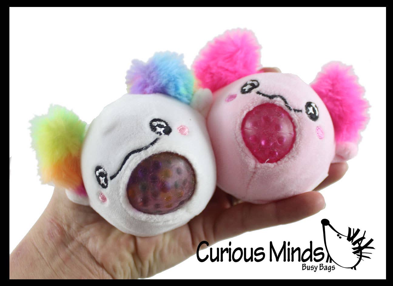 1 PLUSH - These adorable plush stuffed toys are so cute. They are ball shaped and have little beads to help weigh them down at the bottom. In theory, they are supposed to land upright every time you throw them because of the weight, but it doesn't really work. They do however make perfect little sensory rubbing toys because of the beads. Each animal body is about 2.75" - 3", and have cute parts like eyes and legs. This is simply a fun little stuffed animal for kids who like to collect small things, play ball in the house, or even an adorable juggling ball set. Comes in Cat, Dog, Frog, Panda, Sloth, Giraffe, Shark, Seal, Clownfish, and Penguin. It has crunchy little bean pellets in its stomach. The beans make it a small and comforting fidget to rub. This is simply a fun little stuffed animal for kids who like stuffed animals! This is a cute and unique birthday gift for your spouse child, girlfriend or boyfriend.