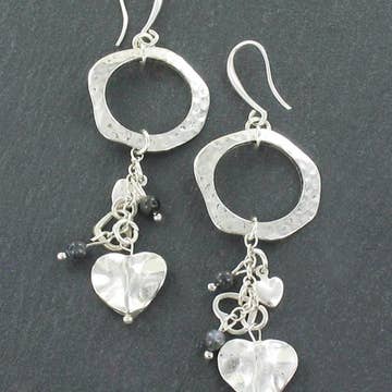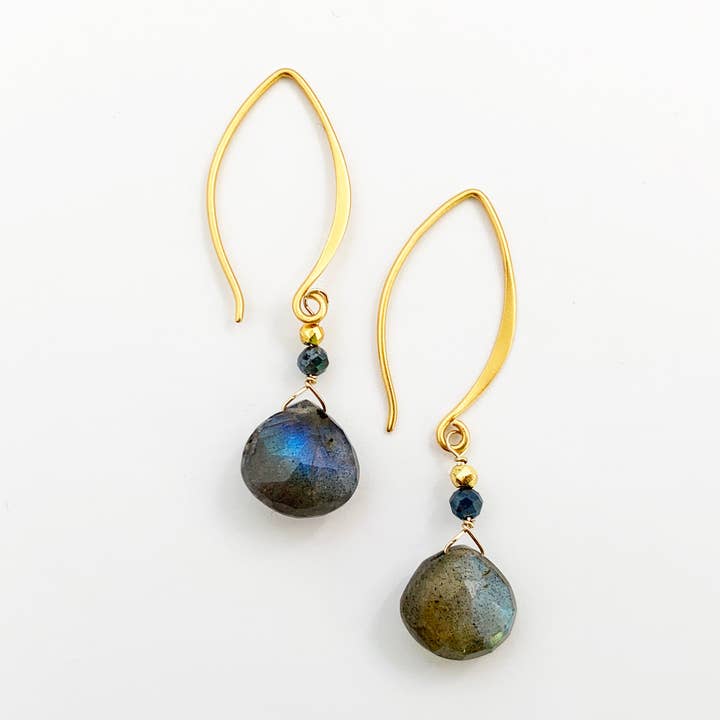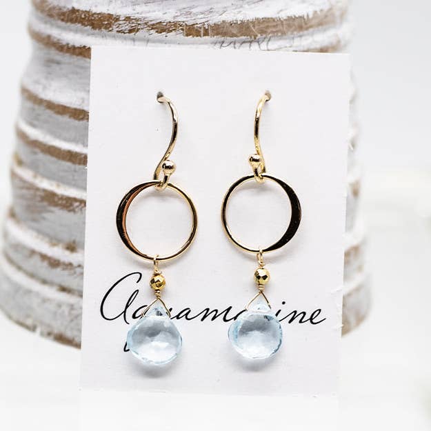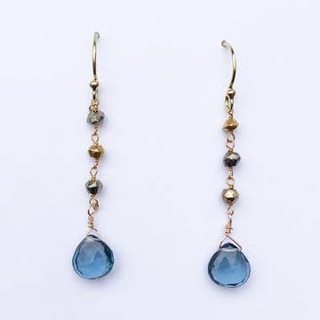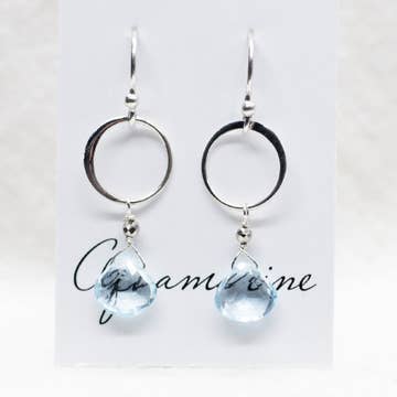 Our Ring Earrings are handmade with Aquamarine and Pyrite on a Sterling Silver ear wire. Aquamarine is the stone of courage. Length 1.5" Handmade in Connecticut, USA