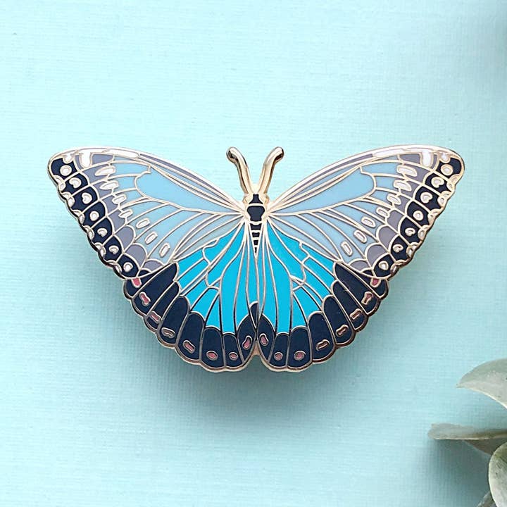 Blue Pansy Butterfly (Junonia orithya) Enamel Pin