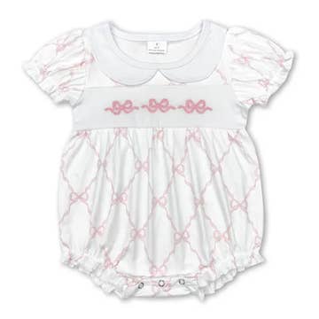 Wholesale Long sleeves pink bow baby girls bamboo zipper romper