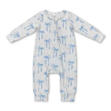 Long sleeves pink bow baby girls bamboo zipper romper